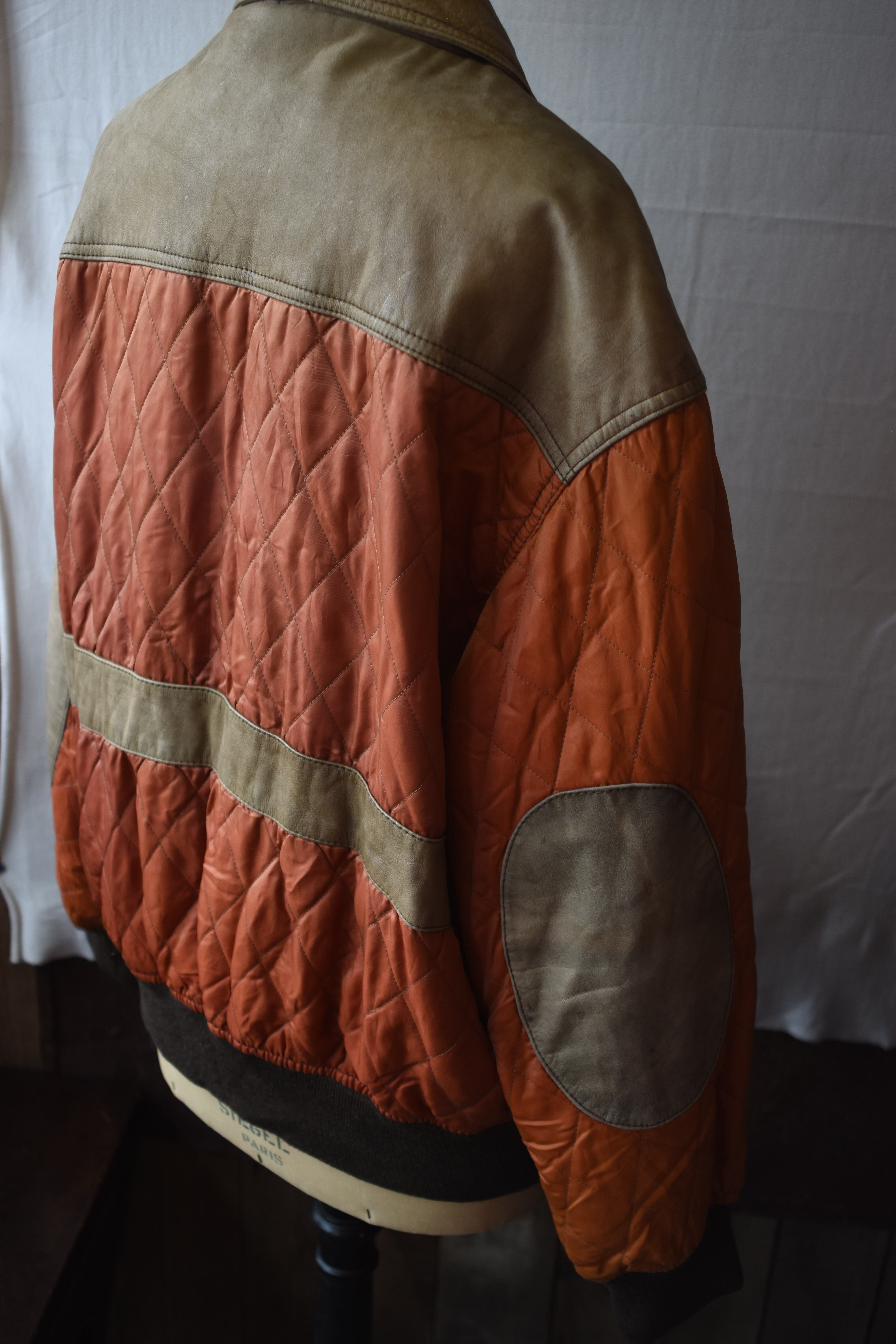 90s BENETTON Leather×nylon switching jacket